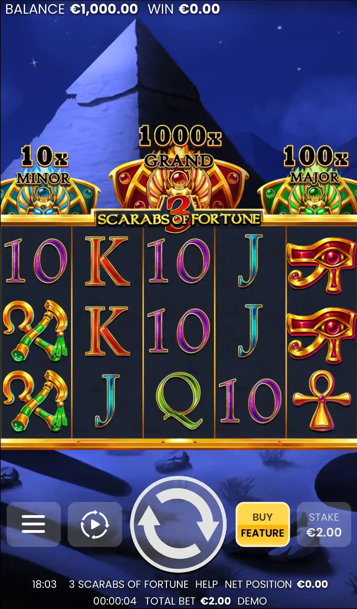 Unearth the secrets of the shifting sands and summon legendary riches in 3 Scarabs of Fortune!