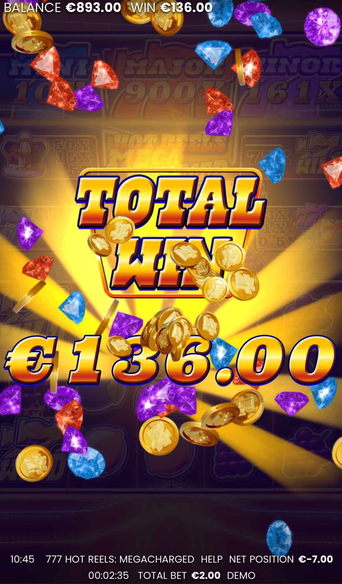 Minor Jackpot - 77x the stake, grows by 2x for each symbol made up of 2 7s, up to a maximum of 777x