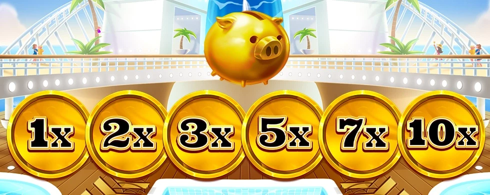 The first time the level is unlocked, the Piggy Bank above the middle reel receives an x2 multiplier.