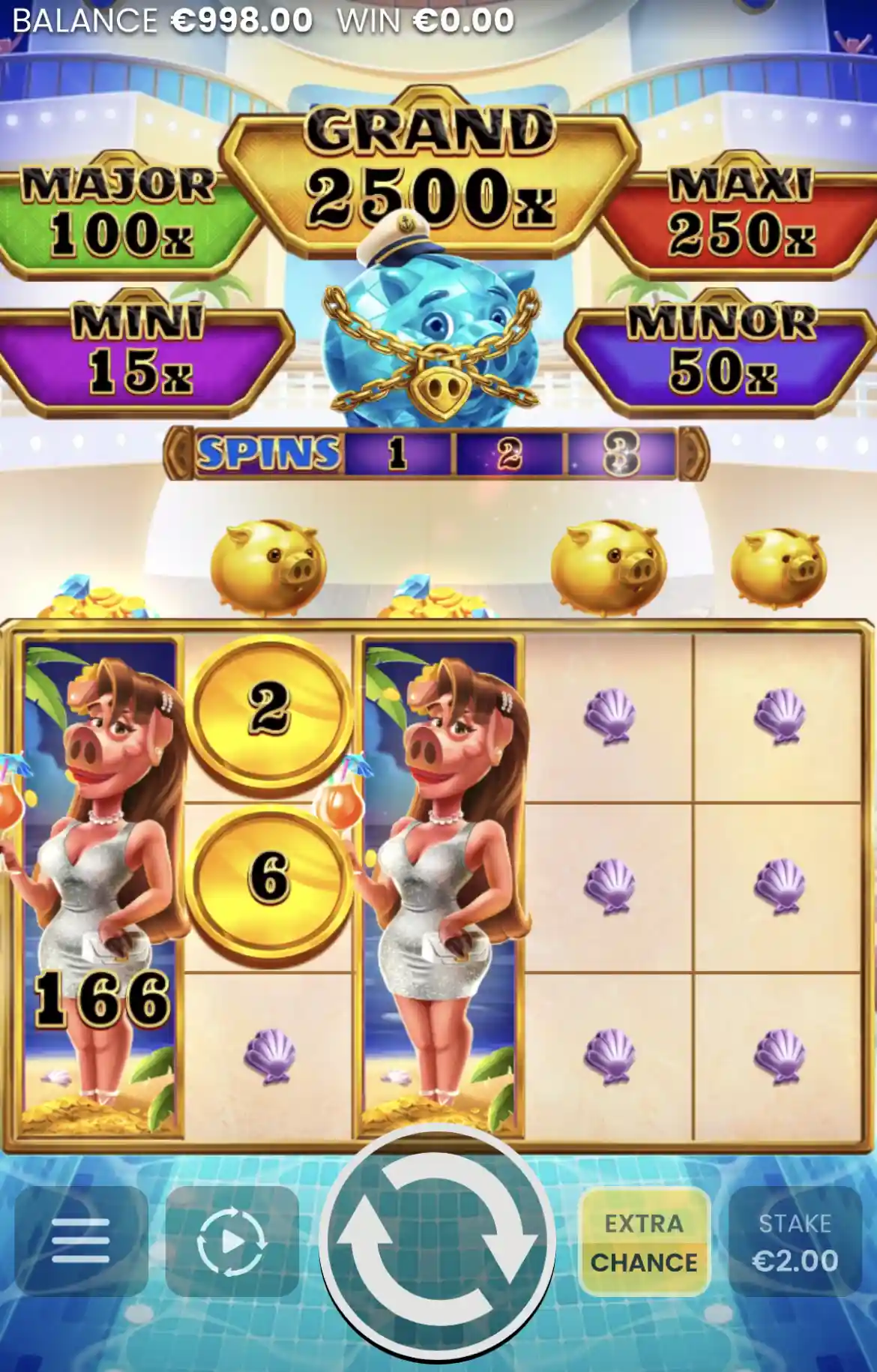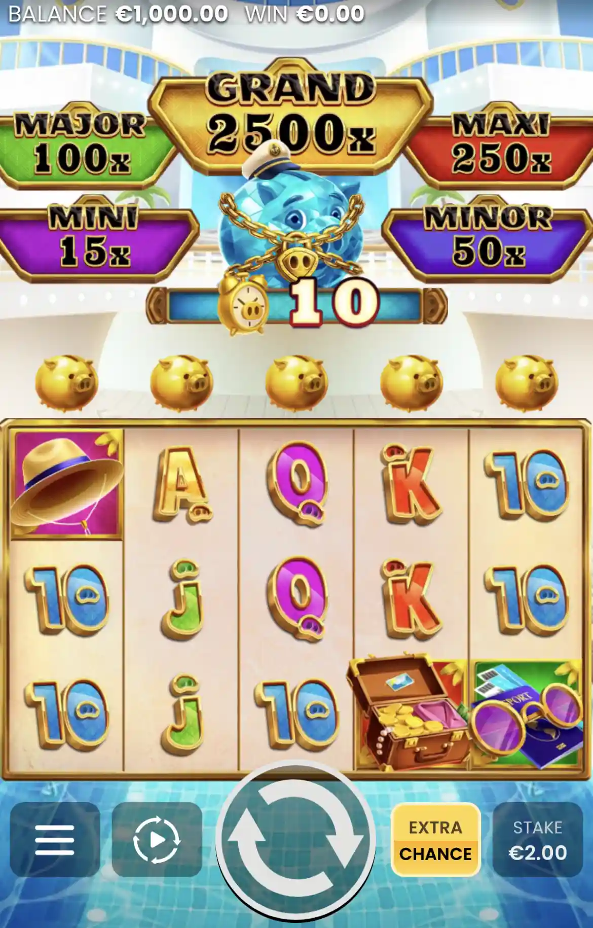 Track the Piggy Pocket Watch as it counts down through 4 levels of permanent upgrades, unlocking powerful features like Mr. Piggy Collectors, Double Jackpot Multipliers, and the Smash & Win diamond bonus.