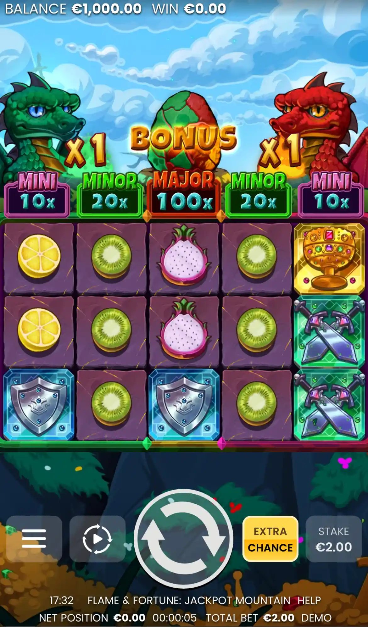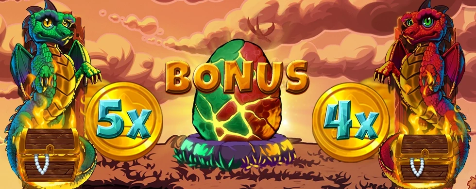 The legendary dragons are back, and this time, the treasure is bigger than ever! Ascend to the summit where the Red and Green guardians protect a mountain trove full of riches. Crack open the Bonus Egg to unleash the fiery Hold & Win feature, where Cash Coins and massive Jackpot Diamonds lock onto the reels for an epic final prize. With two dragons and their growing multipliers doubling the heat, your path to the top is paved in gold. Dare to enter the dragons' lair and claim your fortune!