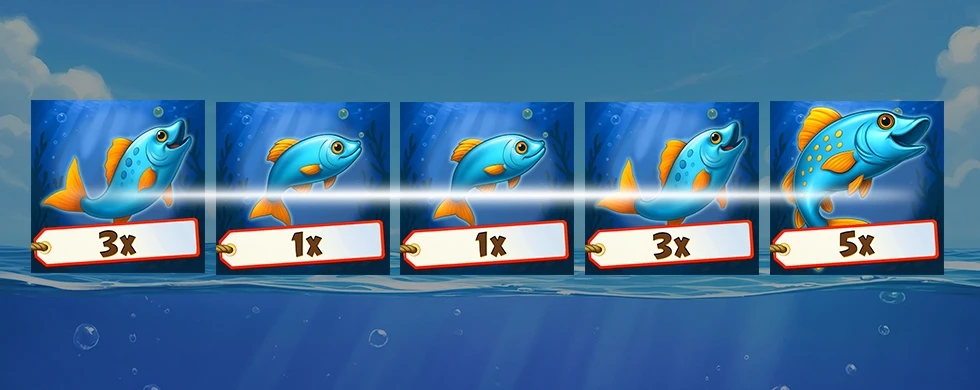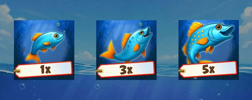 Cash Fish symbols carry Cash Prizes. If the cash prize values are too big to display inside the symbols, they are instead displayed as bet multipliers.