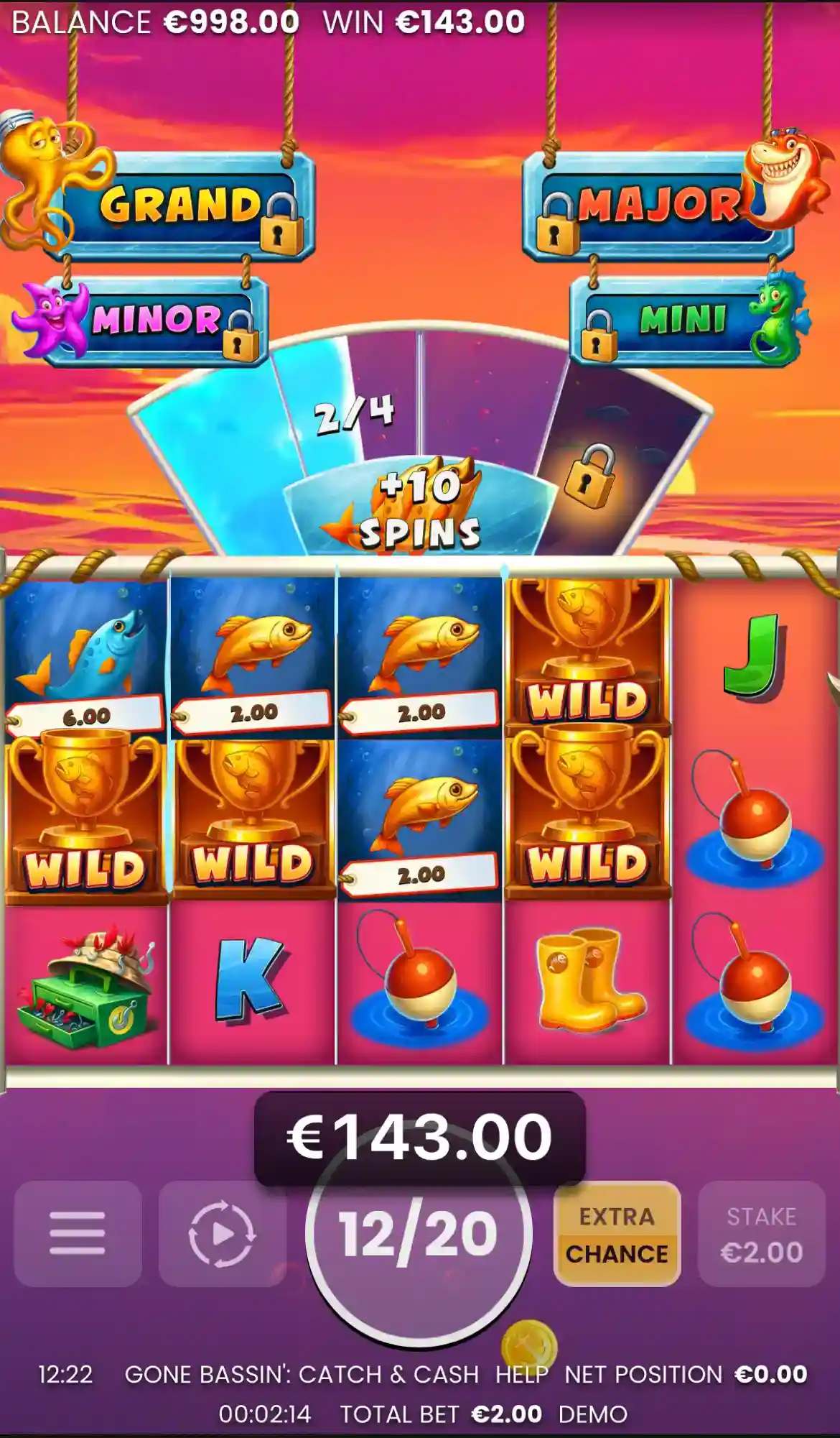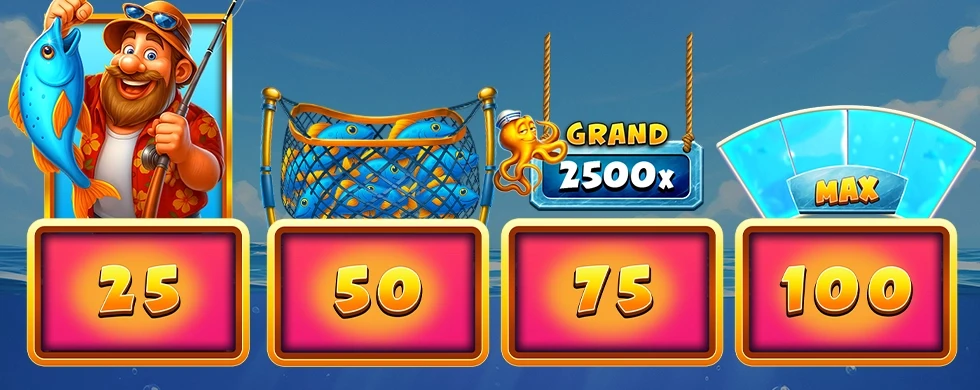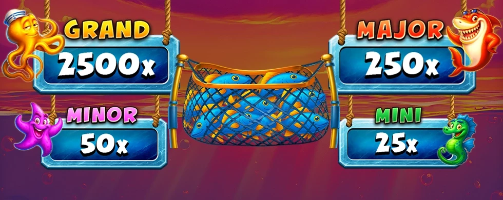 There are 4 Jackpots above the reels, which are unlocked by the Spin Progress. Jackpot symbols can only land during Free Spins and are collected by the Fisherman Wild symbol when both are present on the reels. The Jackpot Prizes are: