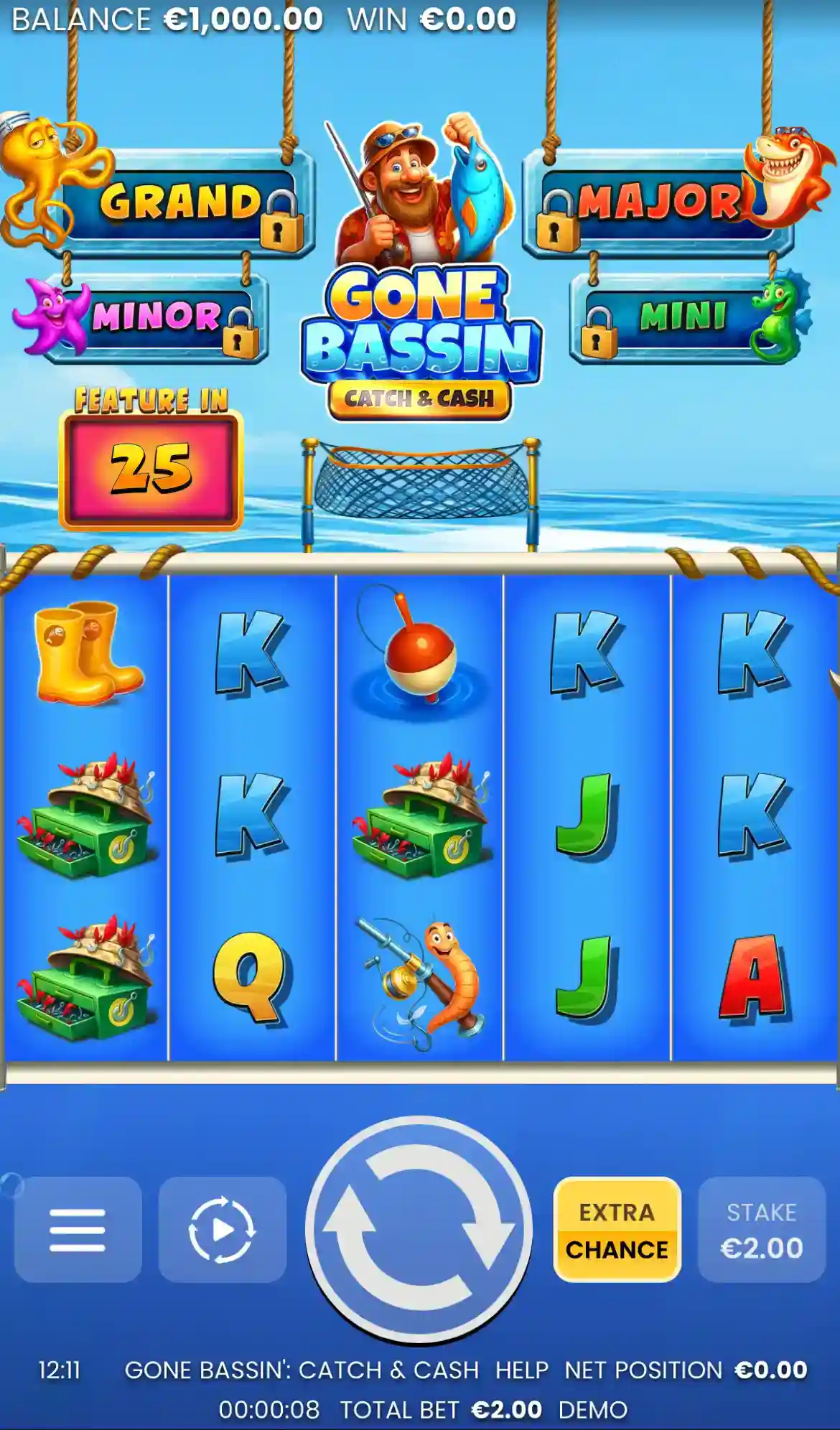 Grab your fishing gear and head to the water in Gone Bassin: Catch & Cash! Keep the reels spinning to drain the Progress Meter and enable permanent features that change the whole game! Unlock the Jackpots and reel in payouts up to 2500x! Dive into the Free Spins Bonus to level up your bounty! Once in the bonus, keep a lookout for the Fisherman Collector and catch the Golden Fish that swim across the reels. With every Fisherman contributing to the Free Spins meter, it’s time to show the bass who’s boss! Ready to cast your line and catch the cash?