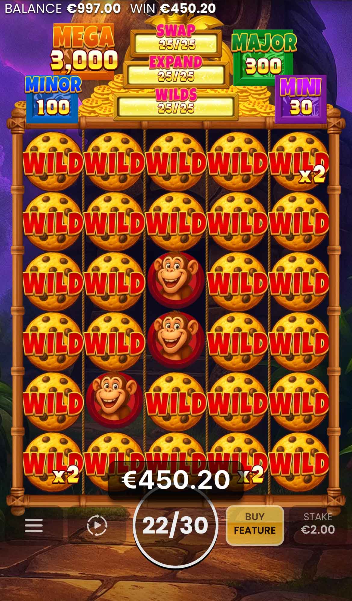 During the Hold & Win bonus, Cash Biscuit and Jackpot symbols lock on the reels and their prizes are awarded at the end of the bonus. When the slot is filled with symbols and no new symbols can land, the feature is terminated.