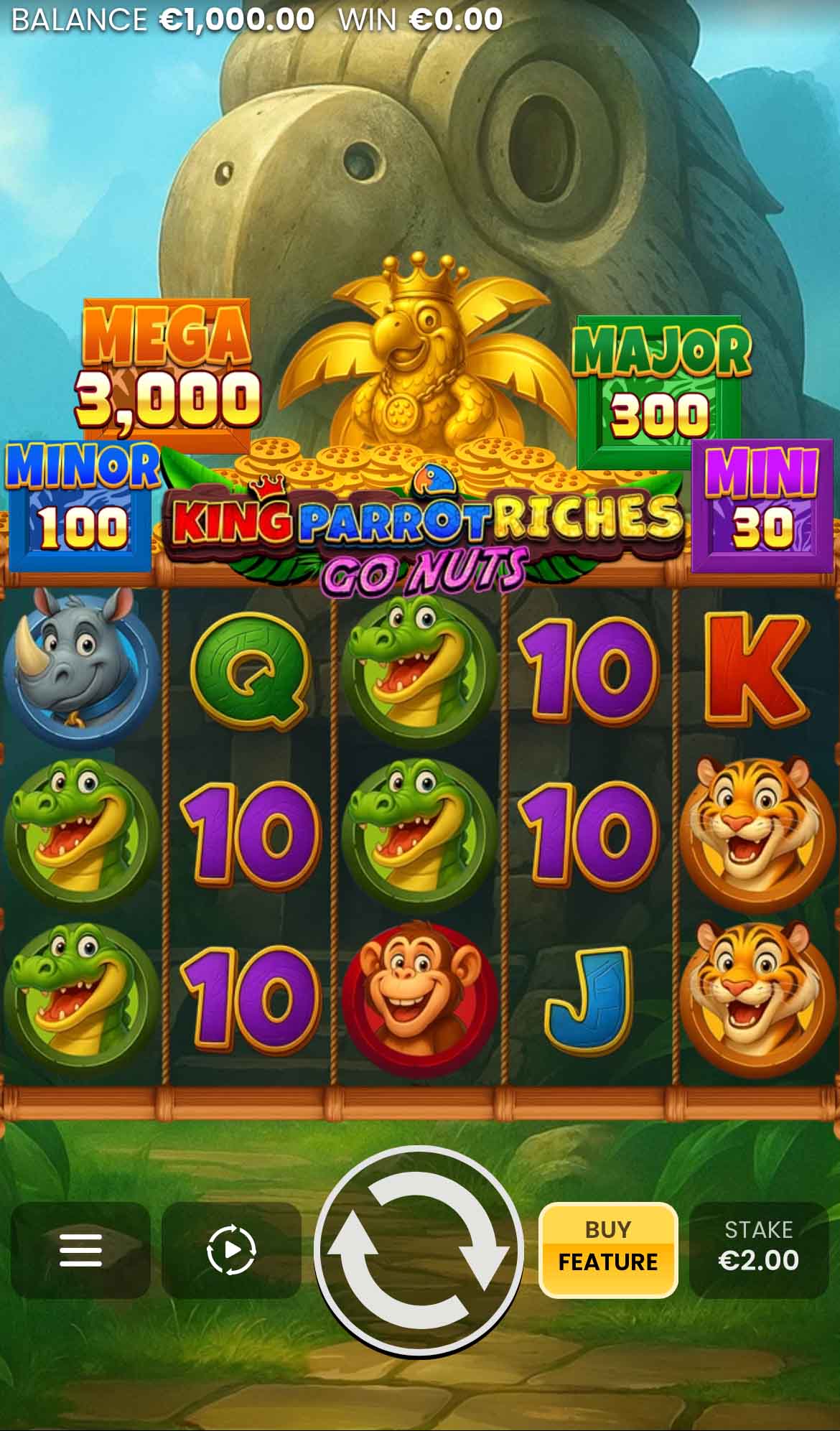 The Parrot has stolen the crown - and now rules the jungle! Step into his vibrant kingdom, where action-packed features and 3 thrilling bonuses await. Collect Parrot Biscuits to unlock Hold & Win, where Cash Prizes, Upgrade Symbols, and dazzling Jackpots lock on the reels. Soar higher with Free Spins across 3 progressive levels and ramp up the thrill with every step. And for the boldest adventurers, the Ladder Bonus offers 7 rounds of juicy rewards, with towering Jackpots waiting at the top. Face the true ruler of the jungle and claim his fortune in King Parrot Riches: Go Nuts!