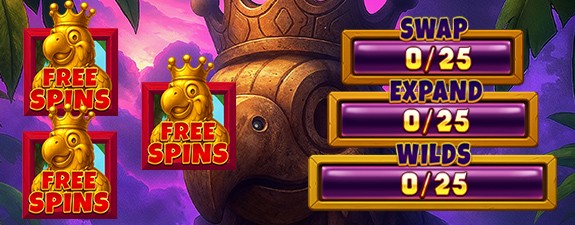 During Free Spins, a progress bar is present above the reels. The progress bar starts at 0 and +1 is added to it for each symbol with a Parrot Biscuit that lands on the reels. There are 3 levels to the progress that need 25 Parrot Biscuits each and fill up consecutively.