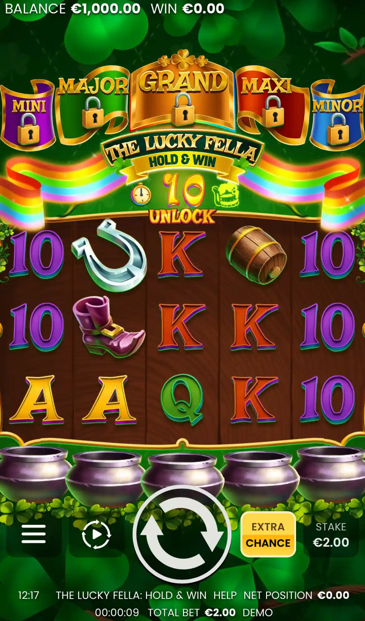 Chase the rainbow to legendary riches in The Lucky Fella: Hold & Win! Step into a world of Irish charm and spin to unlock features and bonuses that supercharge your wins. From Wild Reels to the Bonus Booster, the game evolves with every spin! Trigger the Hold & Win bonus to call upon Leprechaun Collectors who scoop up cash coins and jackpots! Gather all 5 Leprechaun Collectors for the 2,500x Grand Prize! With frequent Free Spins and features that multiply as you play, your luck is just a puff of smoke away! Adventure awaits at the end of the rainbow - are you ready to claim your fortune?