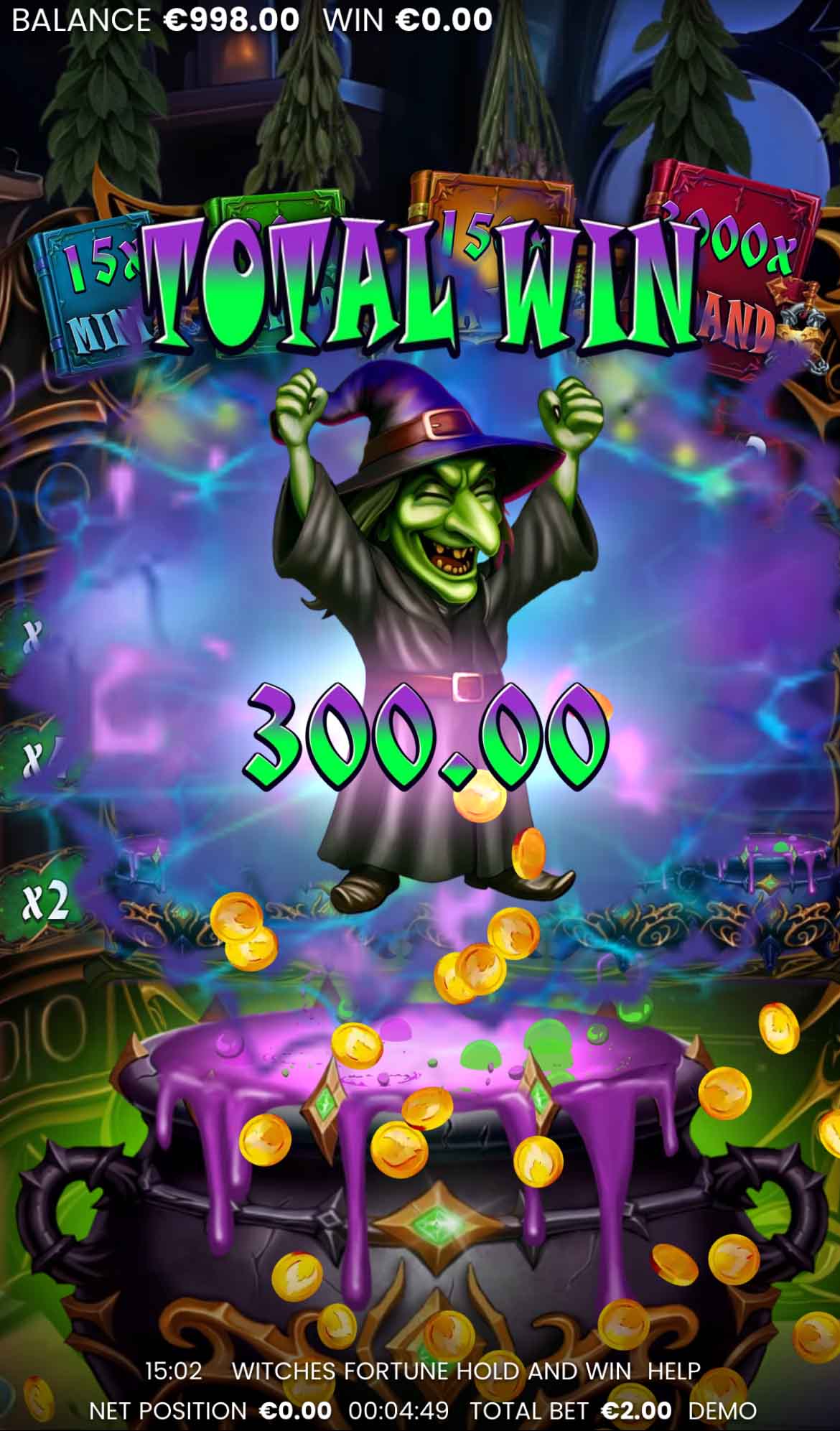 During Hold & Win, the multipliers next to the reels are unlocked. The multipliers have a starting value of x1 and grow +1 when a Witch symbol lands on the row next to them, up to a maximum of x5.